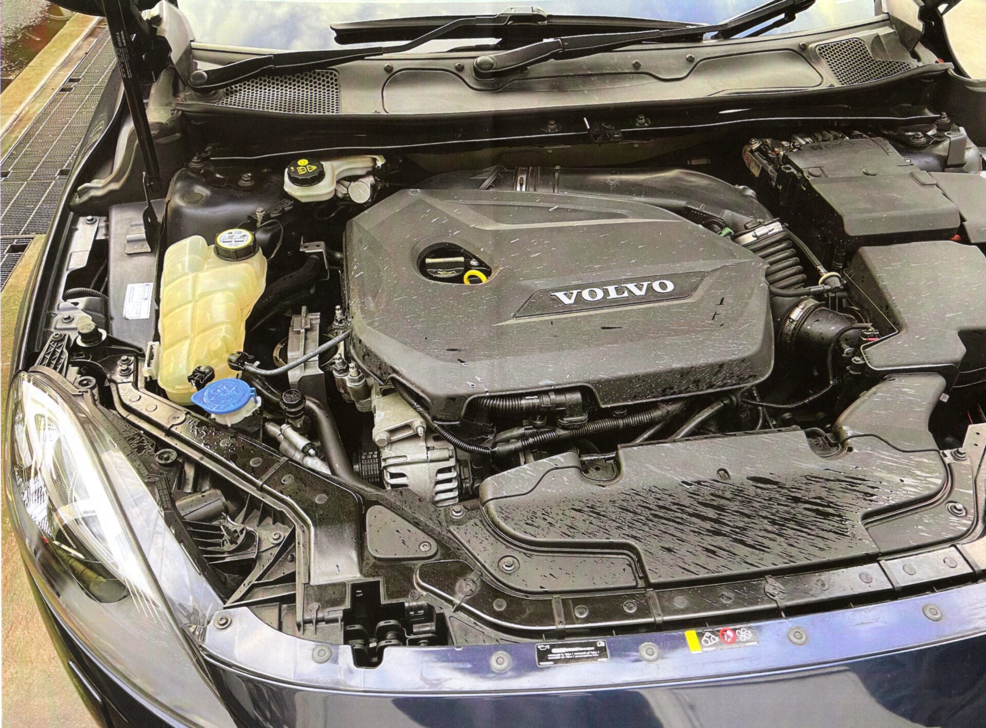 幸いレストラン駐車場まで数十メートルだったのでそのまま駐車場まで走ってボンネット開けてみるとなんとリザーバーサブタンクが空っぽでエンジンルーム内に放射状に液が飛び散った跡が。