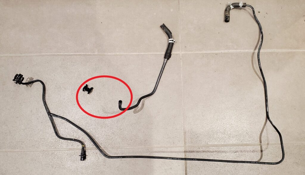 はい、サブタンクに取り付けてあるホースが根元から折れていました。