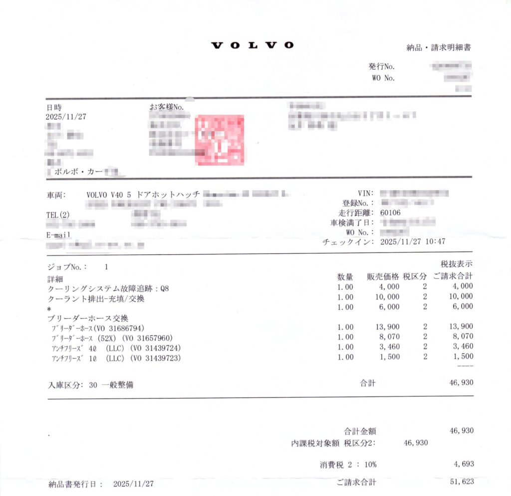 リザーバータンクも劣化部分が認められるとのことで交換推奨されたが、こんなプラタンク1万円強だと。輸入車部品価格ではまそんなもんかなとも思うけど、今の2025年日本の物価高考えるとおいそれとは「はい」とはいえず。